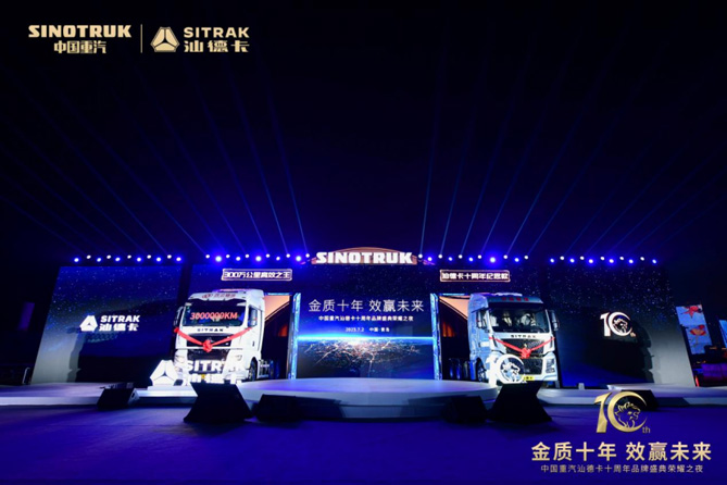 2023年7月2日,“金质十年 效赢未来 | 中国重汽汕德卡十周年品牌盛典荣耀之夜”在中国·青岛圆满举办。中国重汽与经销商、合作伙伴、供应商,以及始终信赖支持汕德卡品牌的“百万英雄”代表等诸多贵宾齐聚一堂,一同回顾汕德卡十年“汕”耀旅程,见证汕德卡百万公里无忧