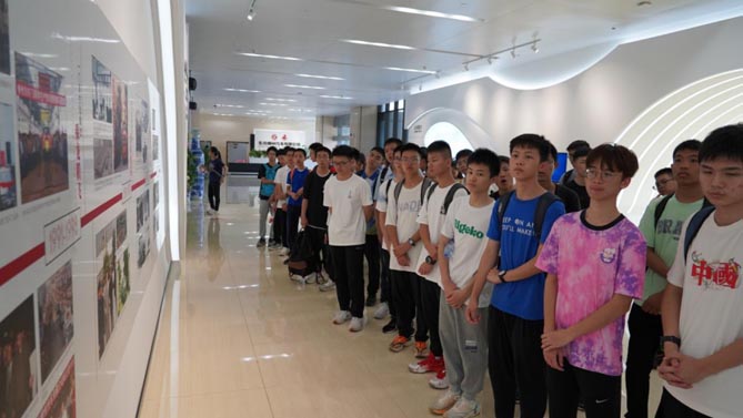 研学期间,讲解员带领同学们参观了全过程数字化高效协同、精益敏捷的大规模智能制造低碳工厂,了解了乘用车的构造及原理,同时也向同学们展示了汽车设计及冲焊涂的数字化管理。