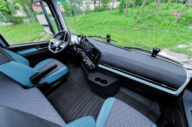 针对中长途卡友 “以车为家” 的核心需求,欧航 H 系列在舒适性与可靠性上实现了双重突破,让中长途运输从 “勉强支撑” 变为 “舒适享受”。2350mm 超宽车身搭配纯平地板设计,使驾驶室内部净高达 1930mm,95% 的成年人可在车内直立行走,活动空间大幅提升;1200mm 超宽卧铺搭配高密度海绵床垫,配合 440L 大容量储物空间,满足卡友休息与储物需求,再加上自动恒温空调、多媒体娱乐系统的加持,将驾驶室升级为兼具实用性与舒适性的 “移动生活舱”。而怠速静谧性表现与 6 向气囊减震座椅,更能有效过滤路面颠簸、隔绝外界噪音,显著降低长时间驾驶带来的疲劳感。在可靠性方面,欧航 H 系列历经高温、高寒、高原的 “三高” 环境验证与等效百万公里强化耐久测试,1500MPa 热成型钢车身(高强钢占比 62%)通过欧盟 ECE R29-03 碰撞认证,核心部件均源自全球一流供应商体系,再加上发动机 10 万公里、变速箱 24 万公里的长周期保养间隔,大幅降低了车辆维修频次与停运时间,彻底解决了卡友 “怕故障、常维修” 的后顾之忧。
