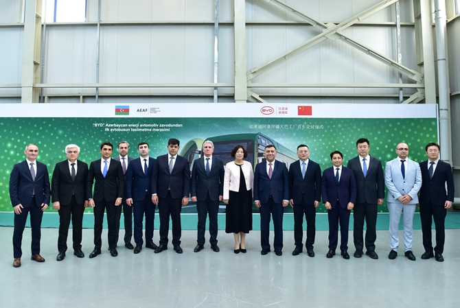 阿塞拜疆经济部副部长Samad Bashirli、中国驻阿塞拜疆大使鲁梅、比亚迪商用车事业部总经理田春龙及欧洲汽车销售中亚地区总经理曹爽共同出席了交付典礼。