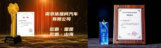 欧霸·雷霆、欧霸·山海是南京依维柯于今年广州车展推出的全新四驱越野车型。产品凭借大空间、真四驱和全地形能力填补了市场上“有越野性能没有大空间,有大空间没有越野性能”的行业空白,在2024(第四届)中国商用车创新盛典和ECI Awards国际数字创新奖年度颁奖典礼上,摘得“产品创新奖”。