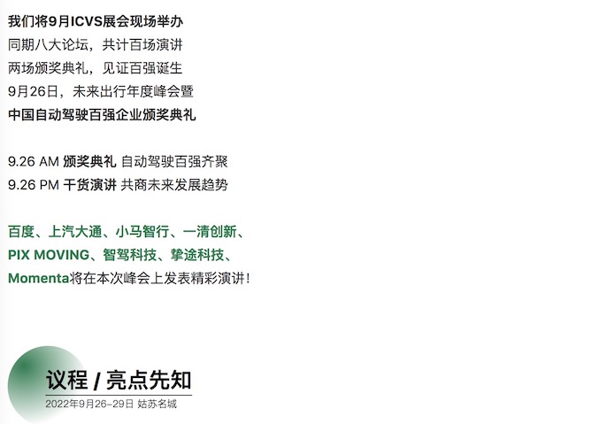 上汽大通、百度等已受邀为ICVS未来出行年度峰会演讲嘉宾!