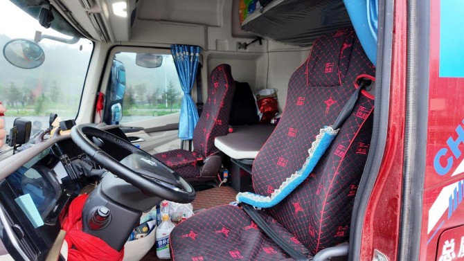 对常年以车为家的干线卡友来说,座舱空间直接影响生活质量。乘龙HK LNG牵引车采用高顶平地板设计,1.8米高的驾乘者直立行走、转身取物完全不局促,比同级车型空间多出20%。此外,车辆还搭载1100毫米超宽软卧和气囊减震座椅,有效缓解驾驶疲劳;车内24处储物格的配置,轻松满足收纳需求,更有5A健康座舱,让干线运输更舒适健康。